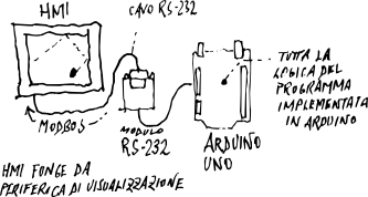 Ora viene la parte interessante: questo sorgente in C va convertito in uno sketch compatibile conArduino UNO. Al momento non è prevista l’interazione dell’utente. Arduino dovrà comunicare con l’HMI tramite il protocollo Modbus.
